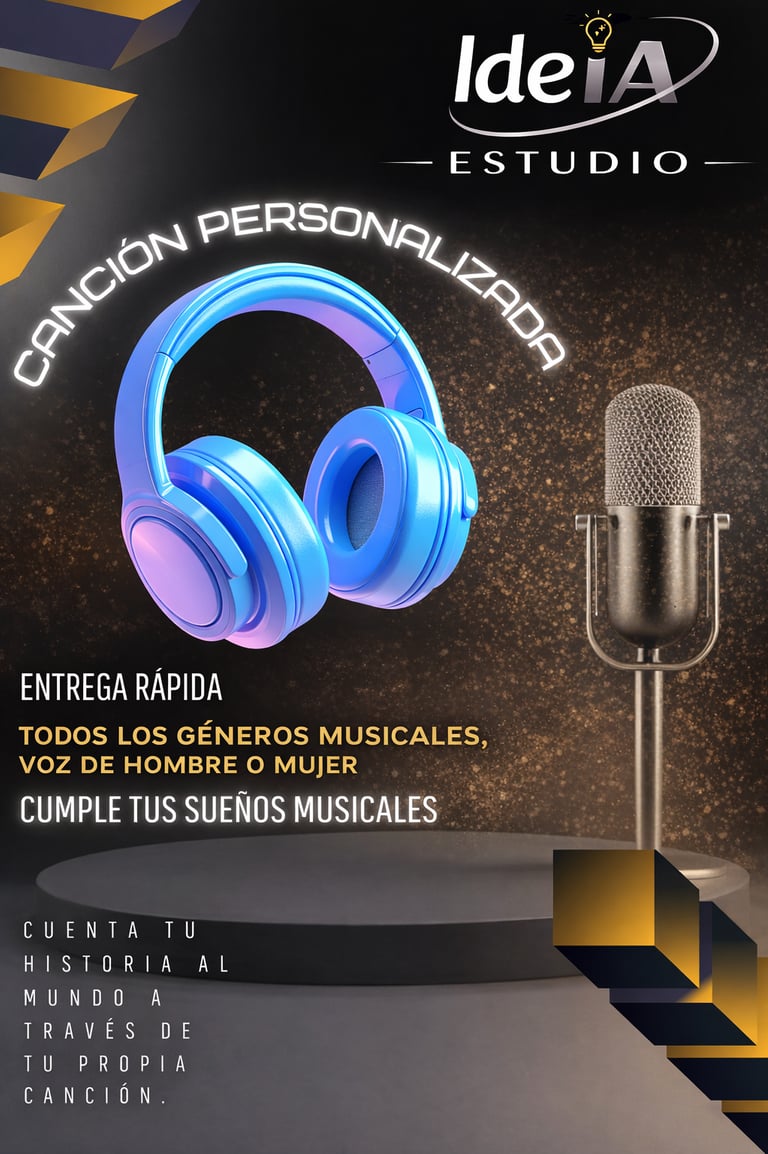 No hay mejor forma de dar a conocer tu historia que a través de la música. Cada recuerdo, cada emoción y cada momento importante merece ser expresado de una manera única y poderosa. Transformamos tus vivencias, sentimientos y experiencias en una canción personalizada que conecta, emociona y permanece en el corazón de quien la escucha. Porque tu historia no es común… y tu canción tampoco debería serlo.